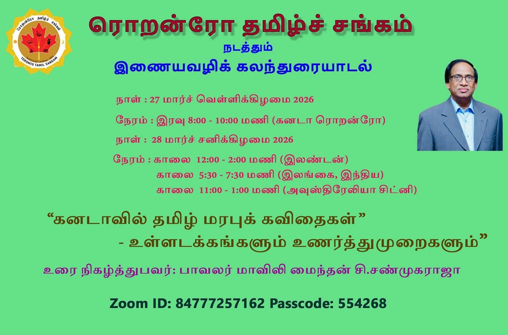 நேரம்: இரவு 8:00 – 10:00 மணி (கனடா ரொறன்ரோ)