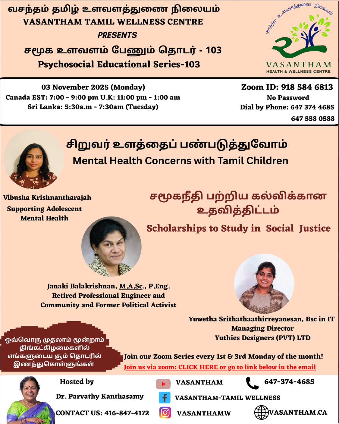 வசந்தம் தமி ழ் உளவளத்துணை நி லை யம் – சமூக உளவளம் பேணும் தொடர் – 103