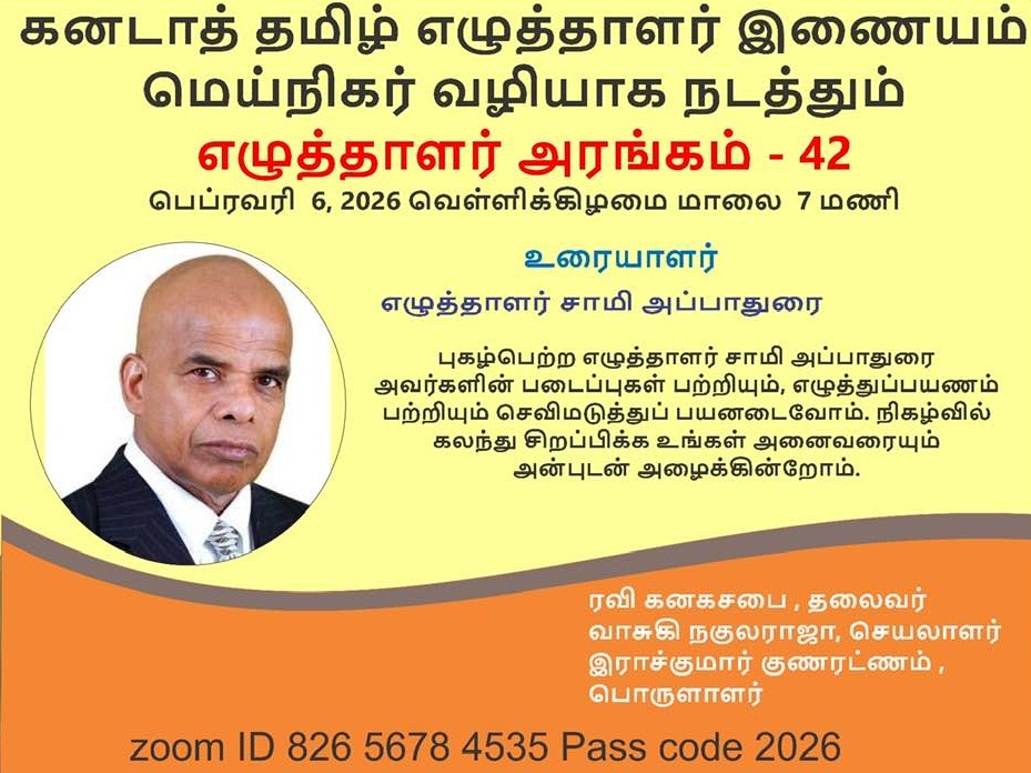 Tamil Writers’ Association of Canada is inviting you to a scheduled Zoom meeting.