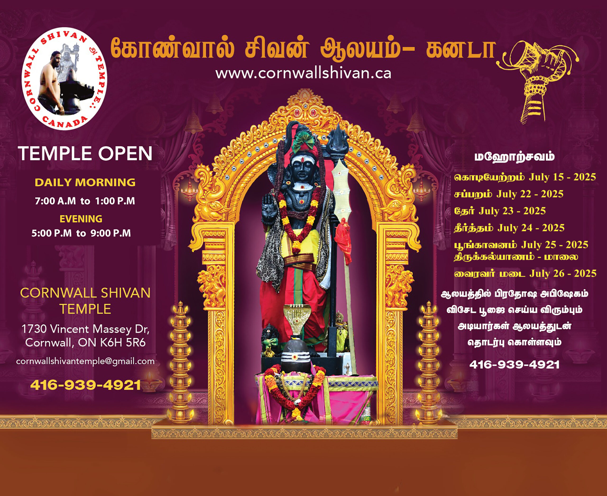 WEBSITE LINK : https://www.cornwallshivantemple.ca