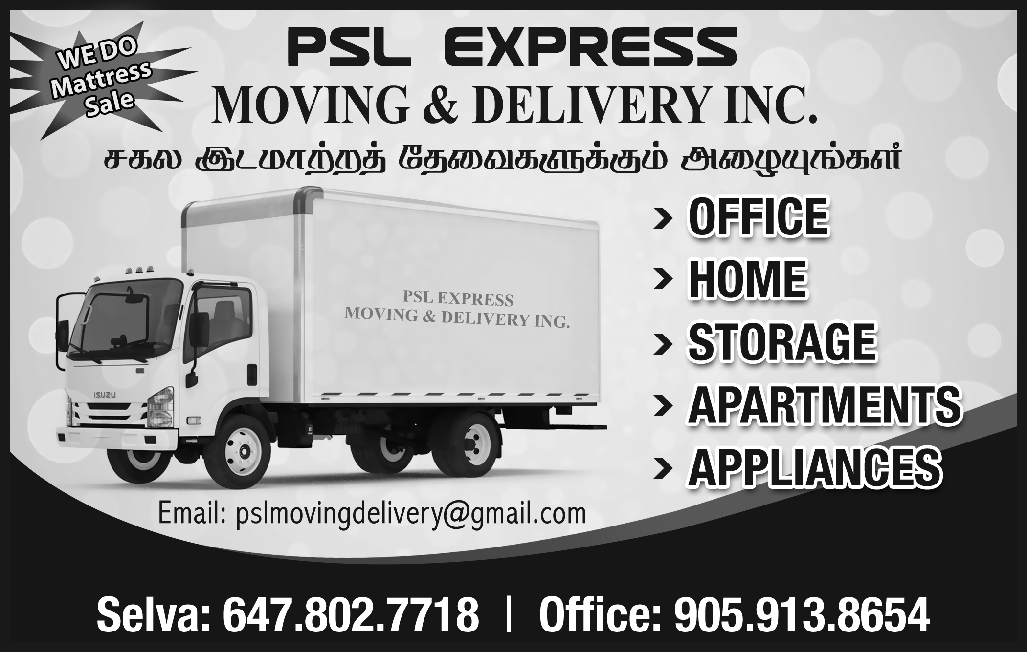 EMAIL : pslmovingdelivery@gmail.com