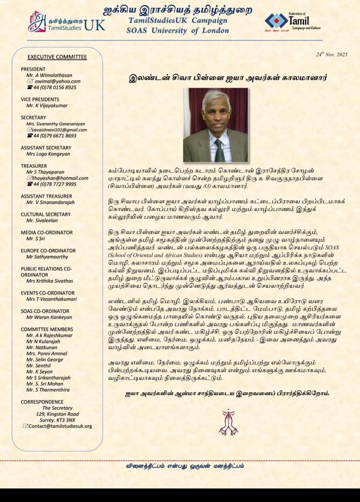 லண்டன் சிவாப் பிள்ளை காலமானார்