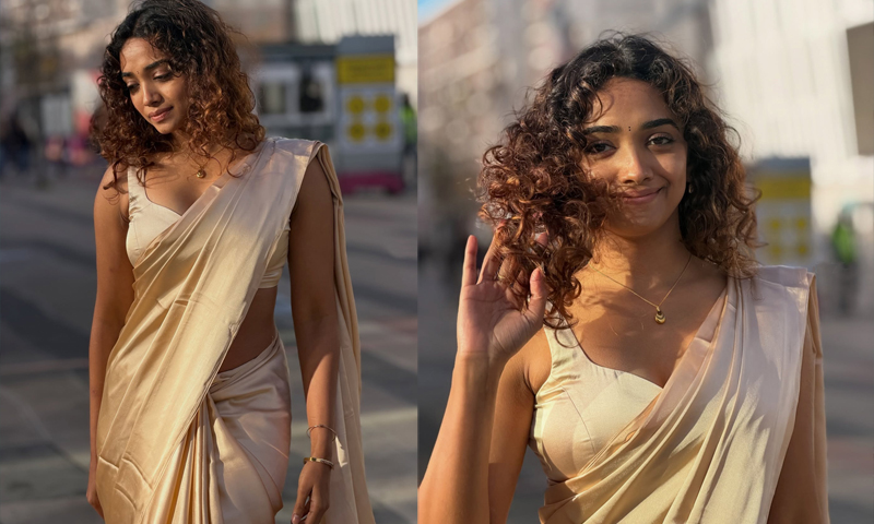 சேலையில் சான்வே மேக்னா அழகிய போட்டோஷூட்