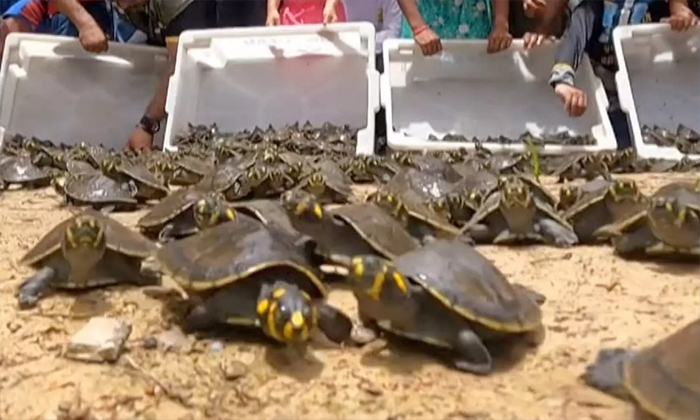 பிரேசிலில் ஆற்றில் விடப்பட்ட 5 ஆயிரம் ஆமைகள்