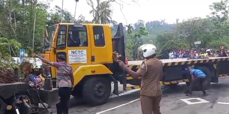 பேருந்தும்-கொள்கலனும் மோதி விபத்து