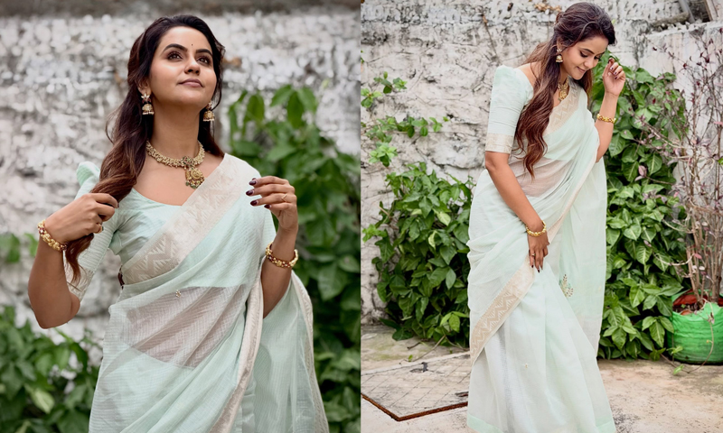 ஹோம்லி லுக்கில் தமிழும் சரஸ்வதியும் சீரியல் நடிகை நக்ஷத்திரா..