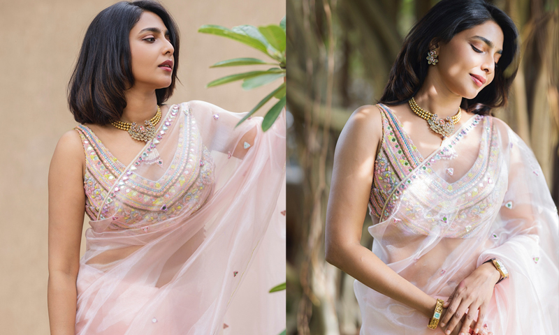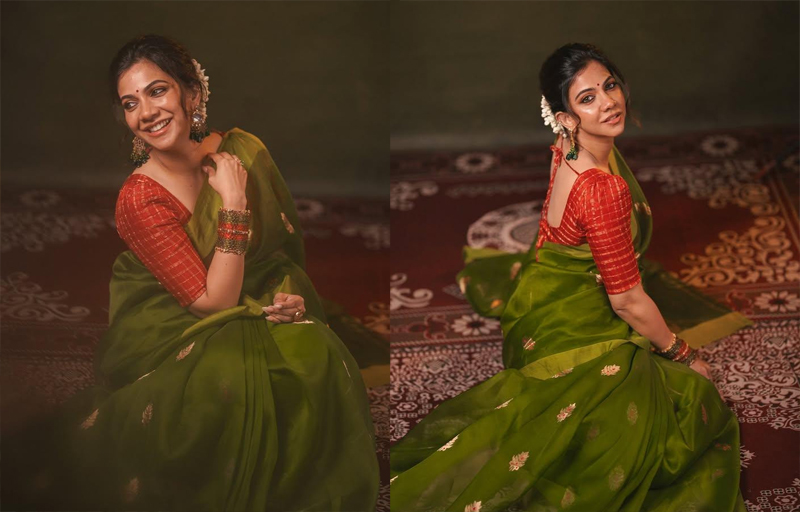 சேலையில் ருக்மிணி வசந்த் அழகிய ஸ்டில்கள்