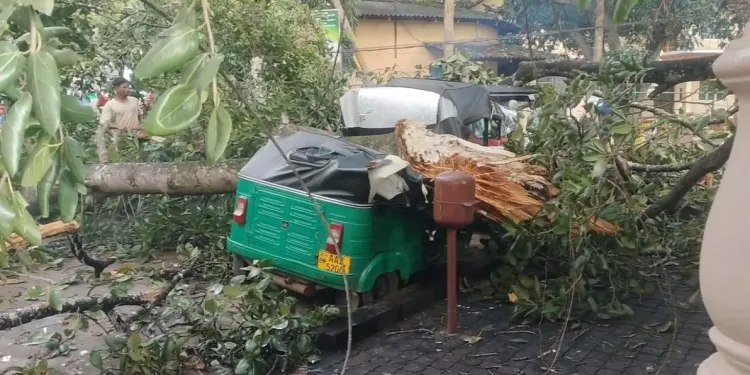 கந்தளாய் வைத்தியசாலைக்கு முன்னால் இருந்த பாரிய இத்தி மரம் வீழ்ந்து விபத்து - முச்சக்கர வண்டிகள் சேதம்