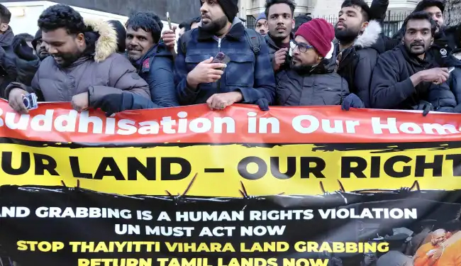 தையிட்டியில் சட்டவிரோதமாக அமைக்கப்பட்ட விகாரையை அகற்றக் கோரி லண்டனில் மாபெரும் கண்டன ஆர்ப்பாட்டம்