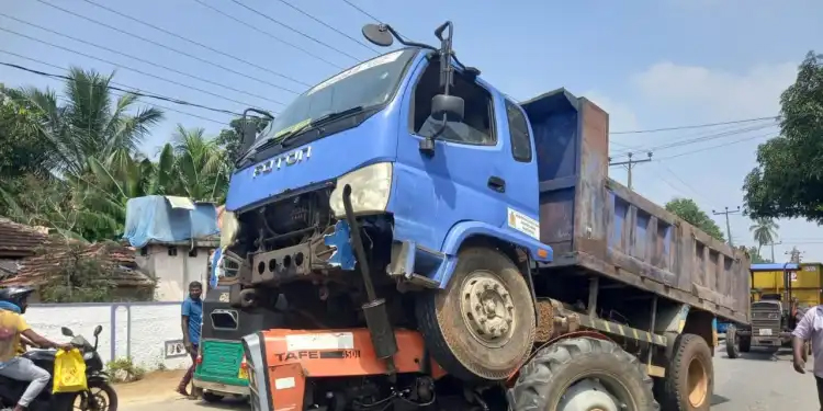 மட்டக்களப்பில் உழவு இயந்திரம் ஒன்றின் மீது டிப்பர் வாகனம் ஏறி விபத்து